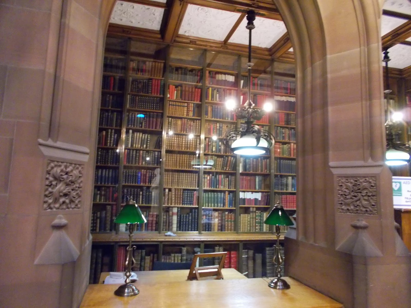 It was actually built after John Rylands' death by his Cuban wife, Enriqueta (I doubt she got her hands dirty with the actual construction though hah!) She was his third wife, Britain's richest woman and the first to be granted the Freedom of the City of Manchester and when her husband died in 1888 she decided to build a library in his name. Thank you Enriqueta! She spent far more on the books than she had on the building itself - and when you see what it looks like inside, you'll begin to get some idea of just how much money that must have been. In 1892 she spent almost the same amount as the construction had cost, on buying a collection of 40,000 volumes that had once belonged to the Earl of Spencer (who, I imagine, would have been an ancestor of Princess Diana) and then in 1901 she spent £155,000 on a collection including works on paper, bamboo, palm-leaf and even bone! It's all so cleverly constructed, with bookcases that protect the books from dust and humidity so that the collection should last for centuries to come. Have a look at the reading room though!